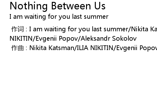 | [00:00.000] | zuò cí : I am waiting for you last summer Nikita Katsman ILIA NIKITIN Evgenii Popov Aleksandr Sokolov |