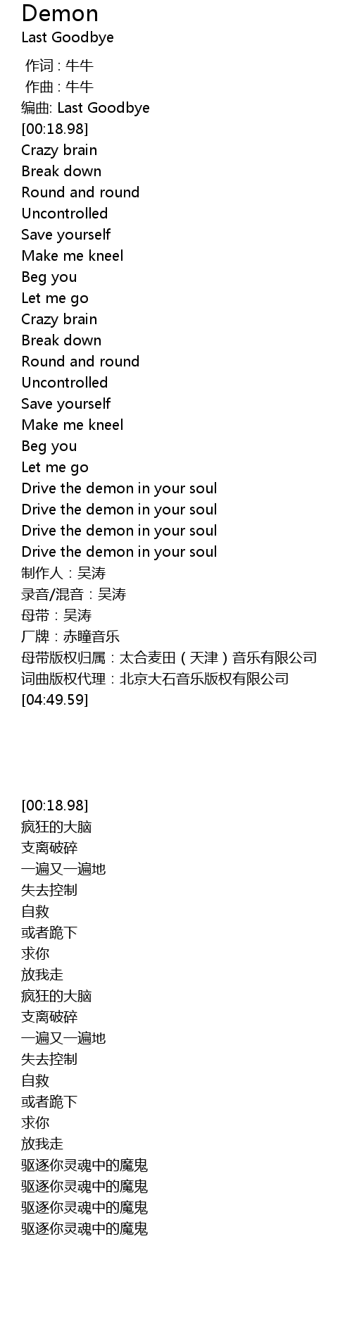 | [04:49.35] | cí qǔ bǎn quán dài lǐ: běi jīng dà shí yīn yuè bǎn quán yǒu xiàn gōng sī |
