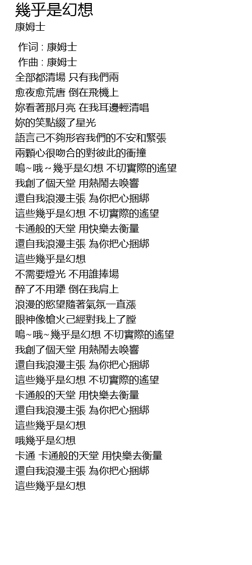 | [01:21.089] | 這些幾乎是幻想 不切實際的遙望 |