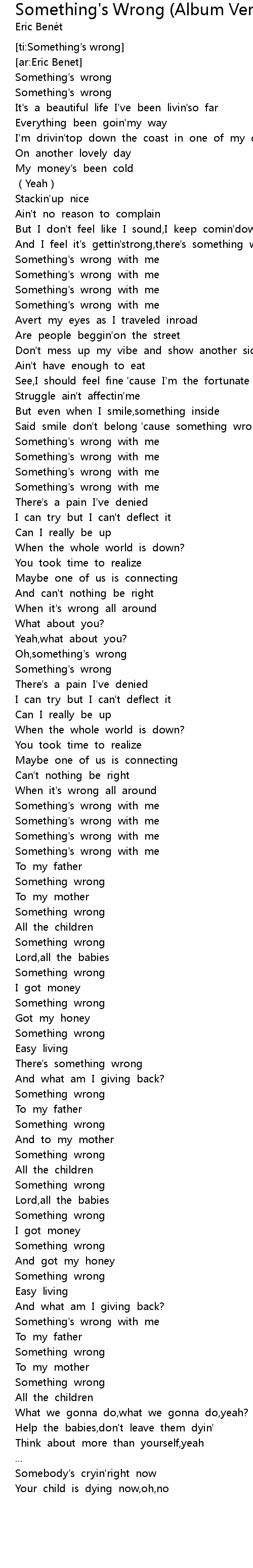 | [00:44.480] | And I feel it' s gettin' strong, there' s something wrong |