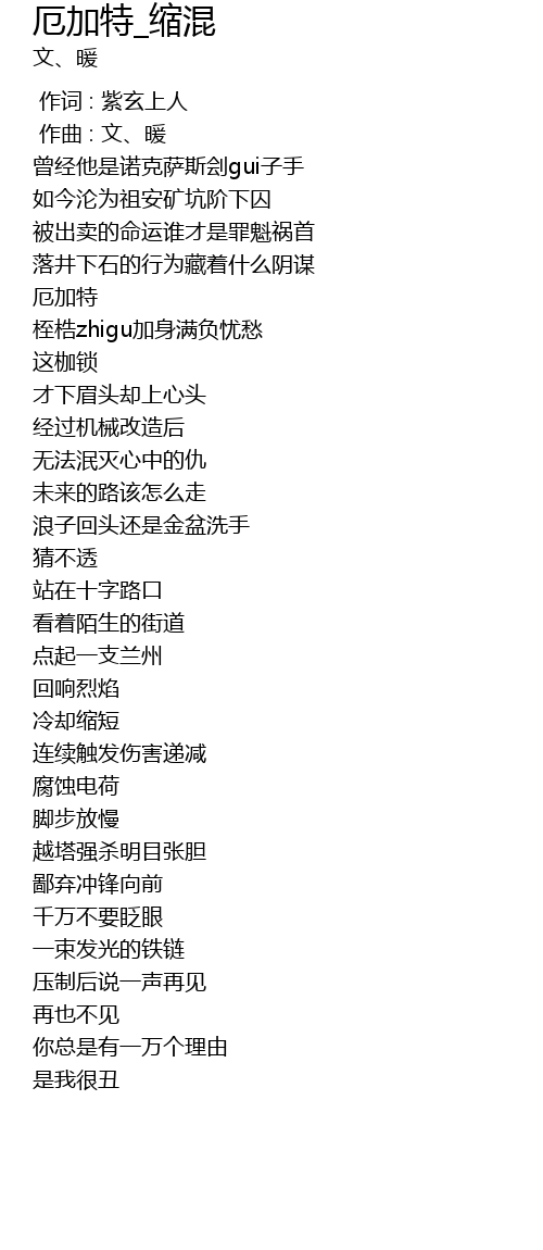 | [00:04.938] | 曾经他是诺克萨斯刽gui子手 |