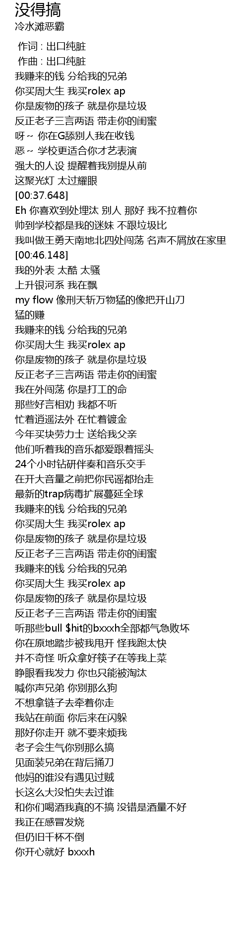 | [01:52.654] | 听那些bull $hit的bxxxh全部都气急败坏 |