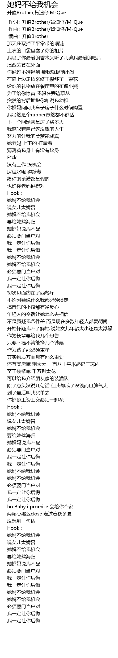 | [00:00.000] | 作词 : 升值Brother/肯迪仔/M-Que |