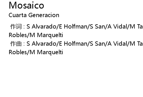 | [00:00.000] | 作曲 : S Alvarado/E Holfman/S San/A Vidal/M Tabares/J M Mateo/P Robles/M Marquelti |