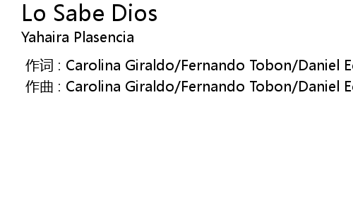 | [00:00.000] | 作曲 : Carolina Giraldo/Fernando Tobon/Daniel Echevarria Oviedo |