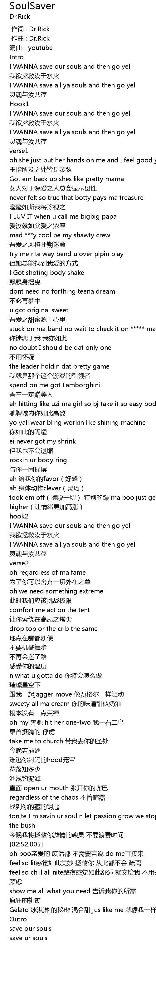 | [01:56.061] | I WANNA save all ya souls and then go yell |