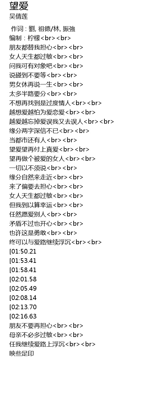 | [03:05.34][02:05.49] | 望爱望再付上真爱<br><br> |