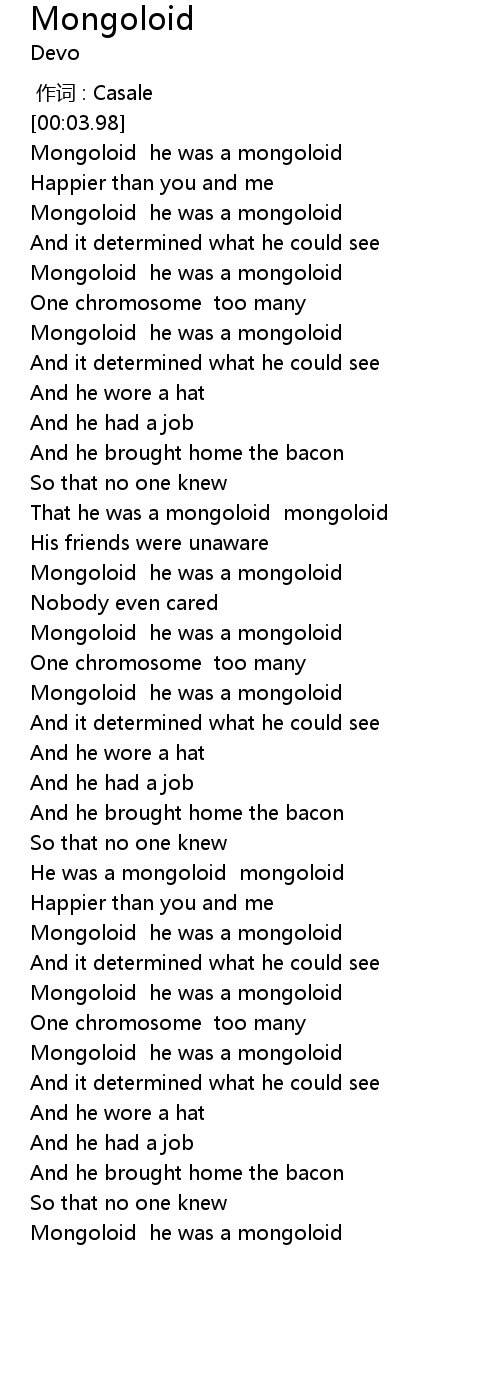 | [00:58.80] | Mongoloid he was a mongoloid |