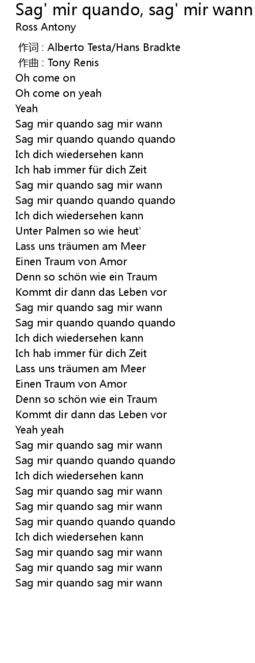 | [00:00.000] | 作词 : Alberto Testa/Hans Bradkte |