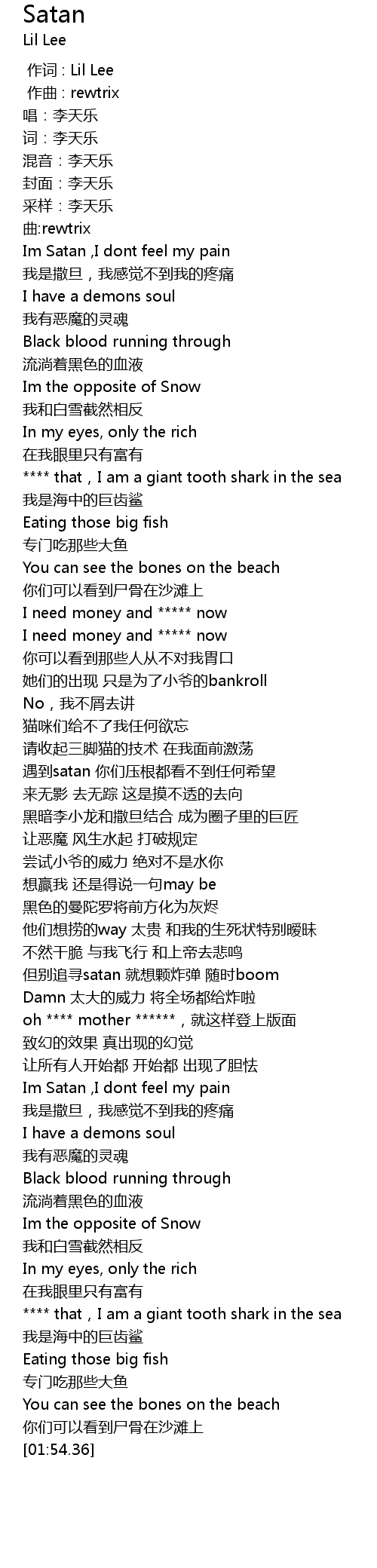 | [00:17.99] | Im Satan ,I dont feel my pain |