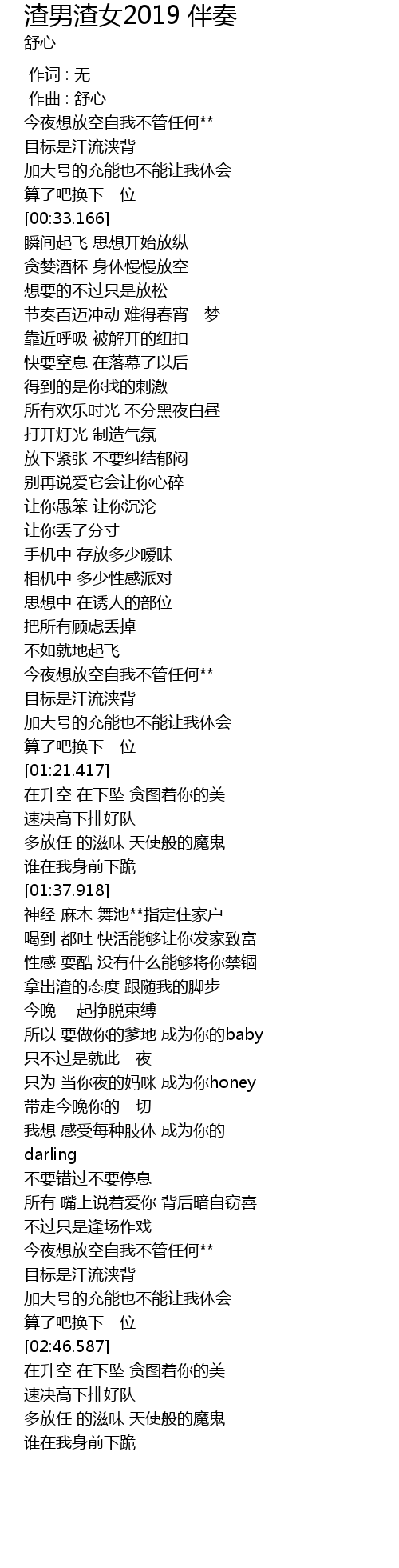 | [02:30.336] | 今夜想放空自我不管任何** |