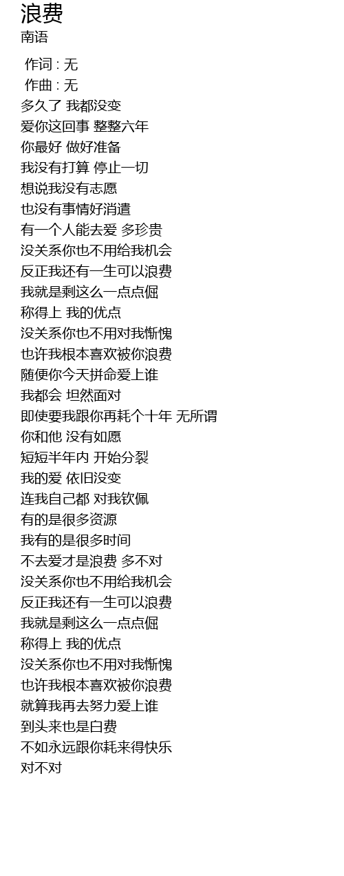 | [04:26.643] | 也许我根本喜欢被你浪费 |