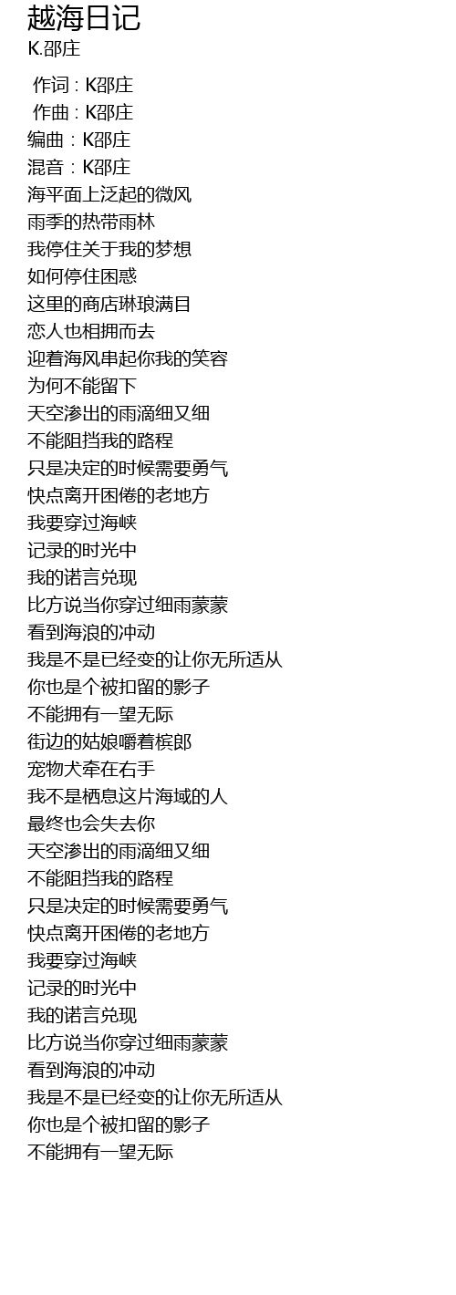 | [00:03.938] | 编曲:K邵庄 |
