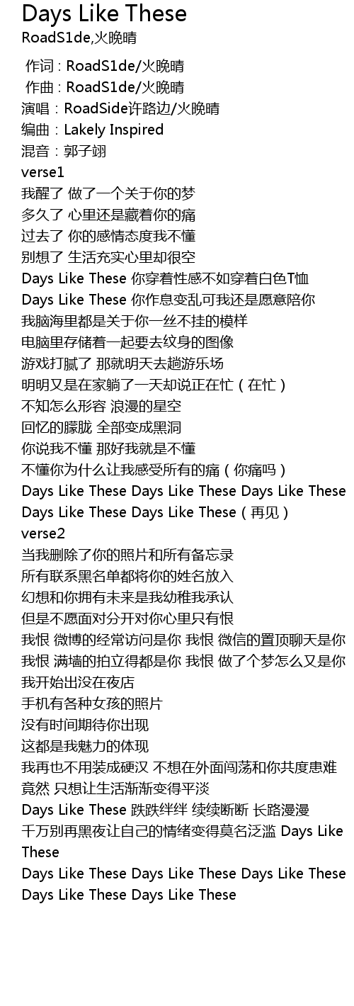 | [02:11.929] | Days Like These Days Like These Days Like These |