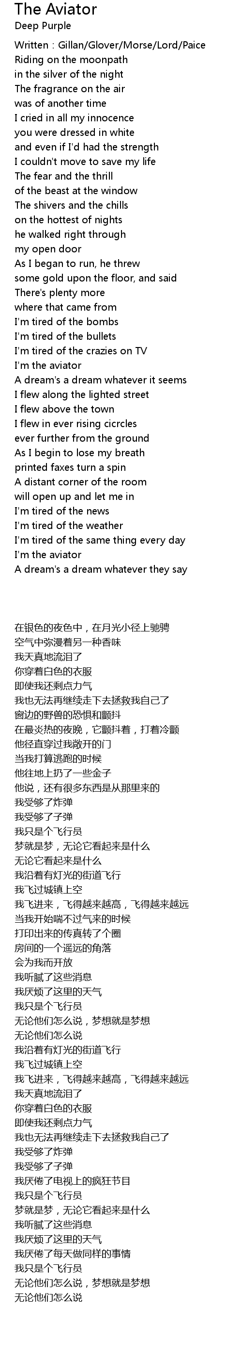 | Song | The Aviator |