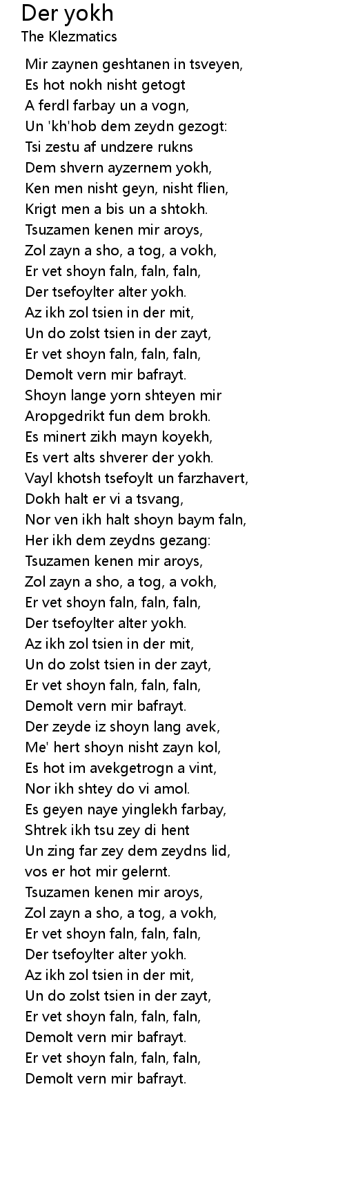 Der yokh Lyrics
