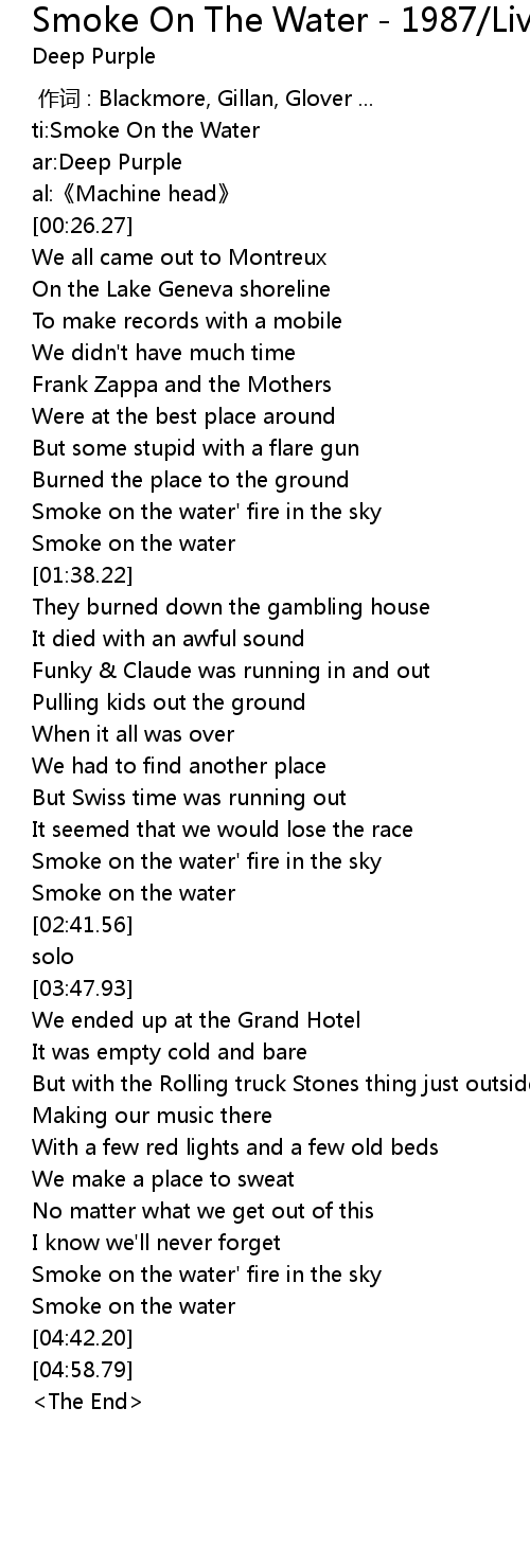 | [04:29.50] | Smoke on the water' fire in the sky |