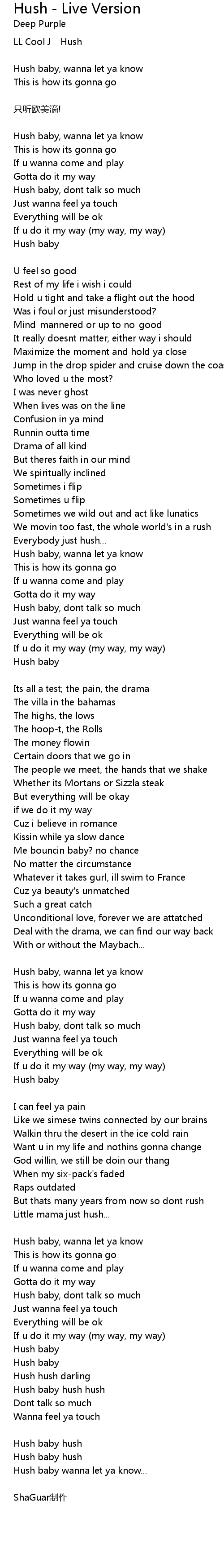 | Hush baby wanna let ya know... | |