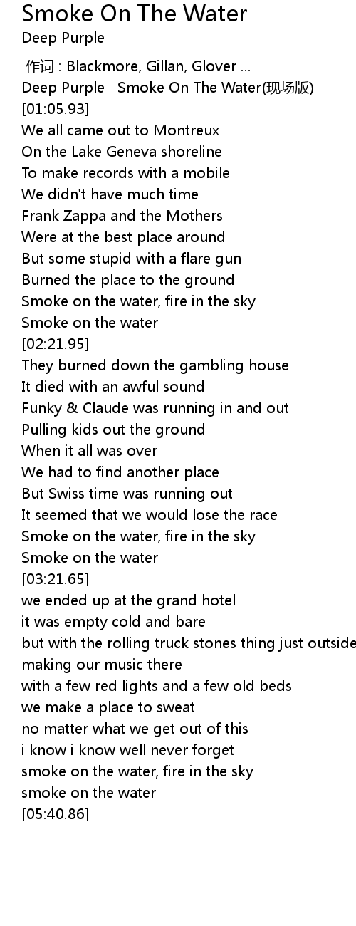 | [05:00.68] | smoke on the water, fire in the sky |