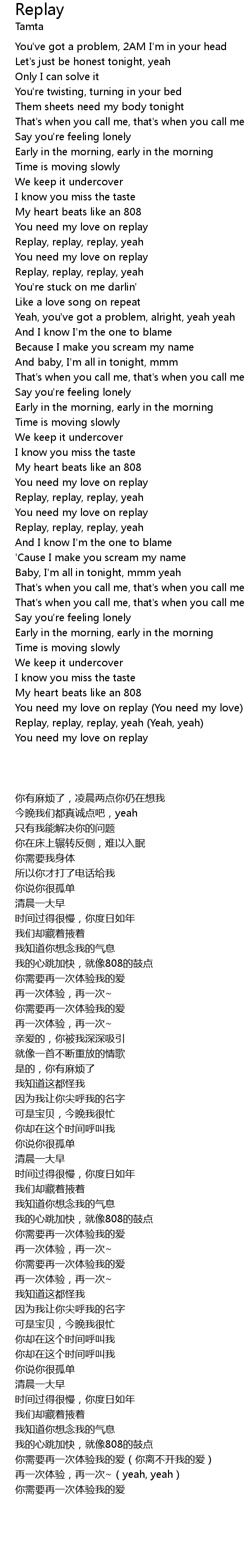 | [02:42.26] | Replay, replay, replay, yeah (Yeah, yeah) |