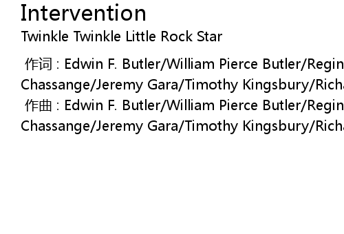 | [00:00.000] | 作词 : Edwin F. Butler/William Pierce Butler/Regine Chassange/Jeremy Gara/Timothy Kingsbury/Richard R. Parry |
