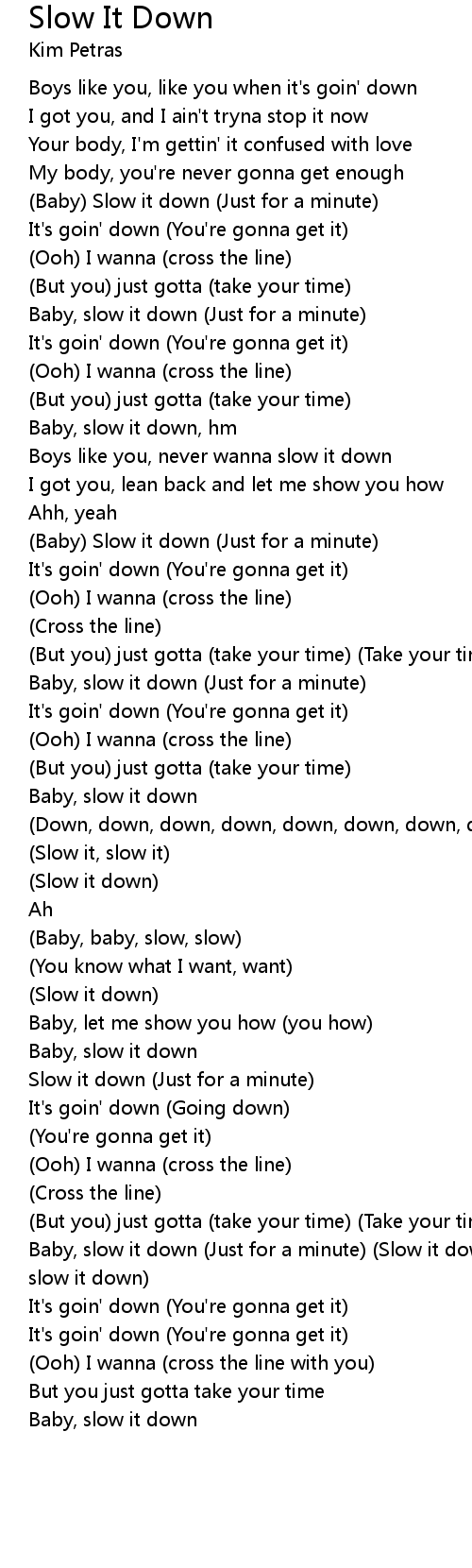 [03:19.56] Baby, slow it down (Just for a minute) (Slow it down, slow it down, slow it down)