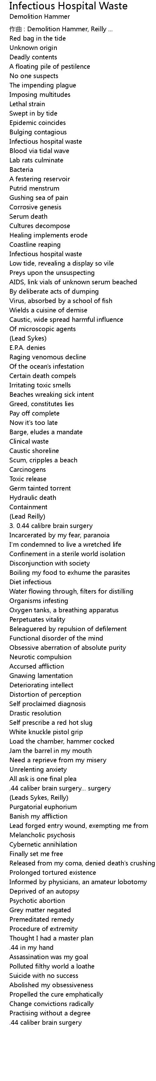 | 作曲 : Demolition Hammer, Reilly ... | |