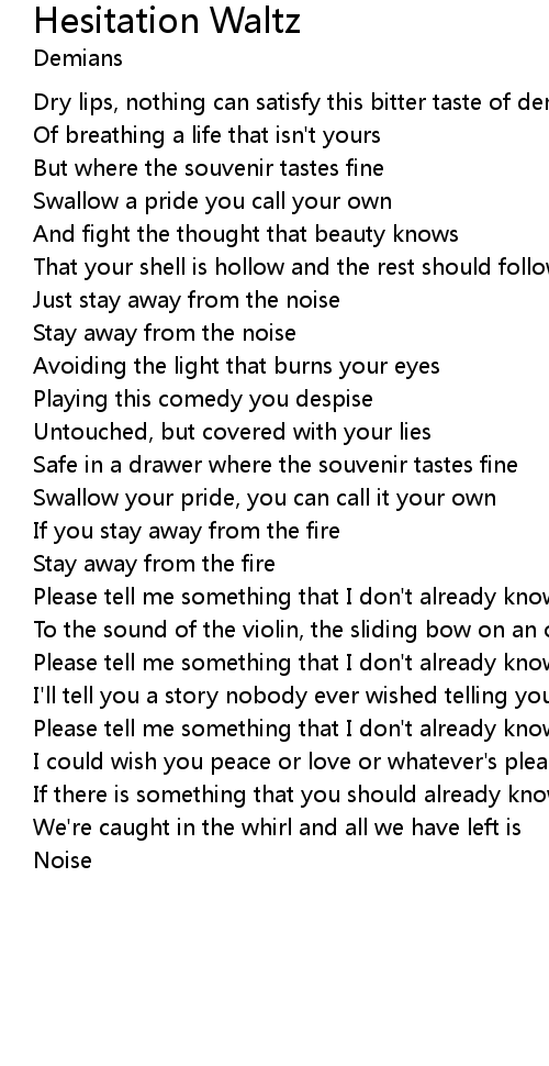 | Dry lips, nothing can satisfy this bitter taste of denial | |