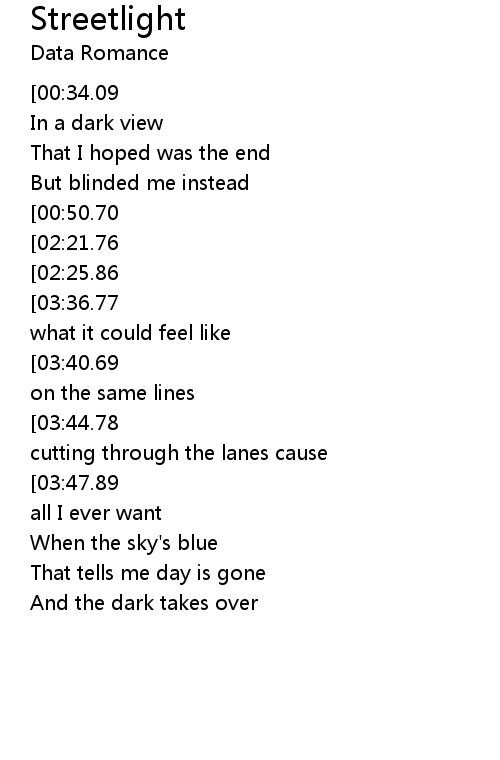 You are like a streetlight |