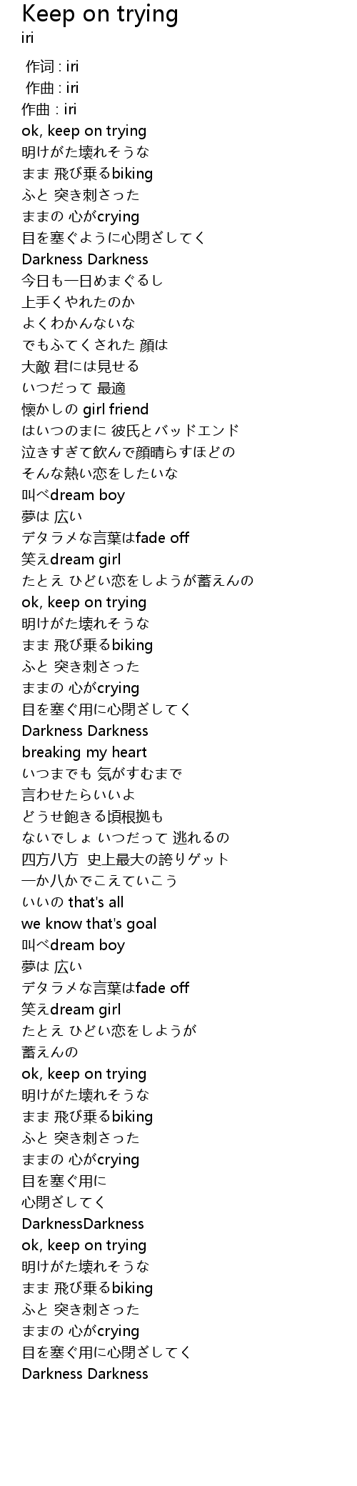 | [01:50.450] | ないでしょ いつだって 逃れるの |