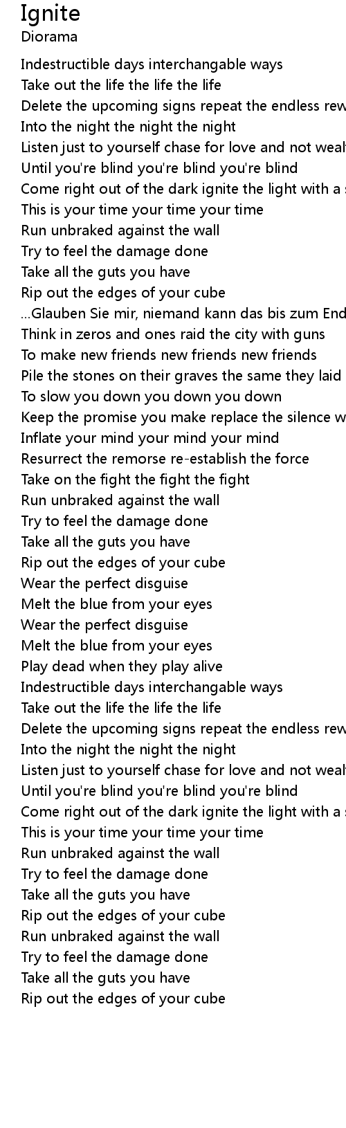 | ...Glauben Sie mir, niemand kann das bis zum Ende seines Lebens durchstehen... | |