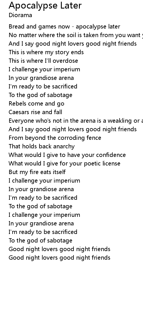 | Bread and games now - apocalypse later | |
