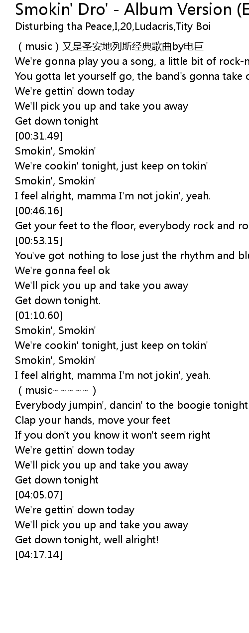 | [00:39.44] | Smokin', Smokin' |