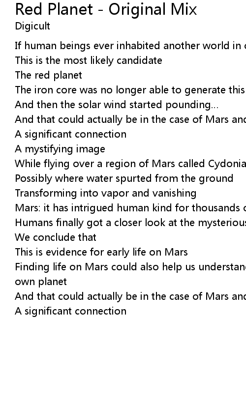 | Song | Red Planet - Original Mix |