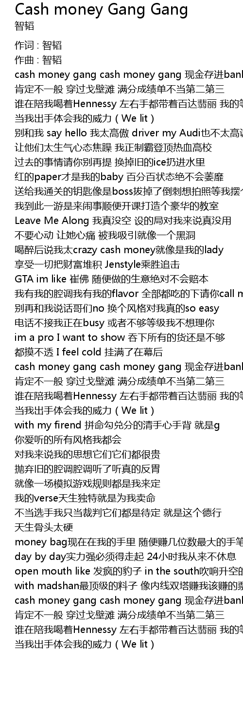| cash money gang cash money gang 现金存进bank 数字往上翻 | |