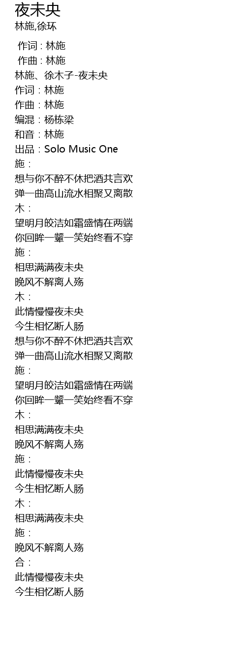 | [00:00.114] | 林施、徐木子-夜未央 |