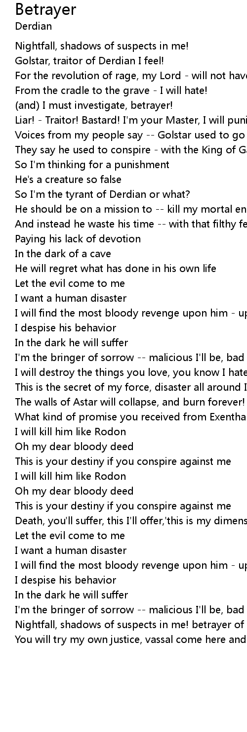 Nightfall, shadows of suspects in me! betrayer of my kingdom! |