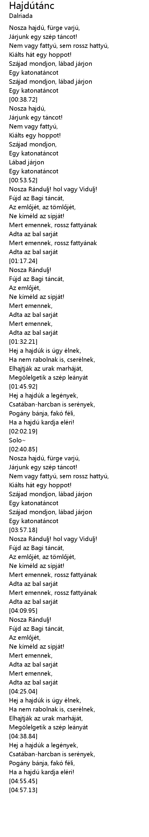 | [04:25.85] | Hej a hajdú k is ú gy é lnek, |