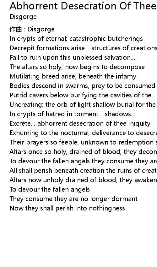 | Song | Abhorrent Desecration Of Thee Iniquity |