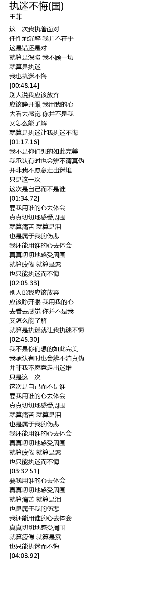 | [00:44.32] | 我也执迷不悔 |