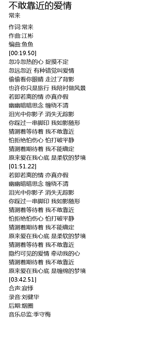 | [02:45.47] | 猜测着等待着 我不敢靠近 |