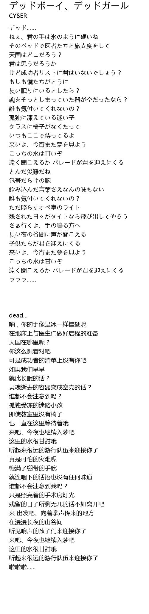 | Song | デッドボーイ、デッドガール |