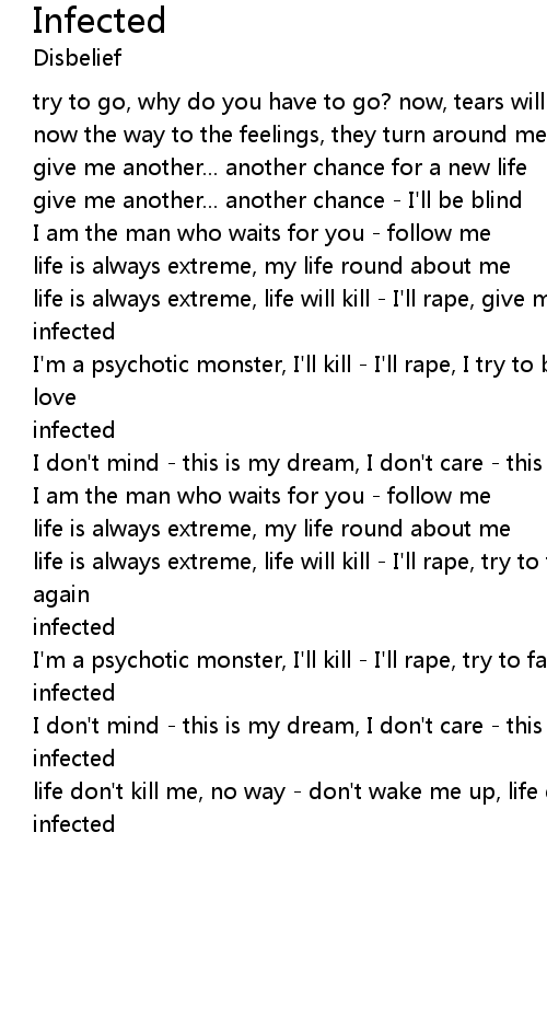 I'm a psychotic monster, I'll kill - I'll rape, try to fall in love again |