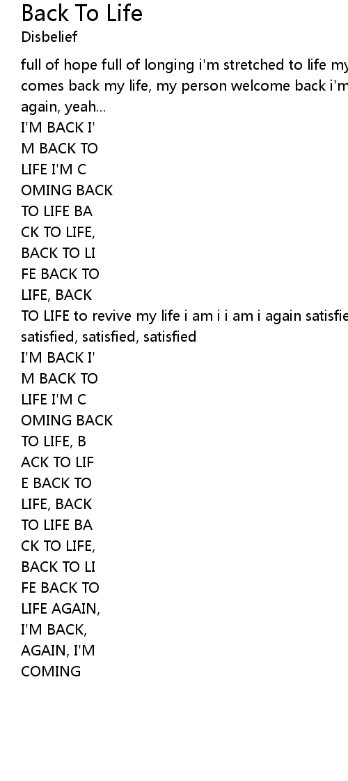 | TO LIFE to revive my life i am i i am i again satisfied satisfied, satisfied, satisfied, satisfied, satisfied | |