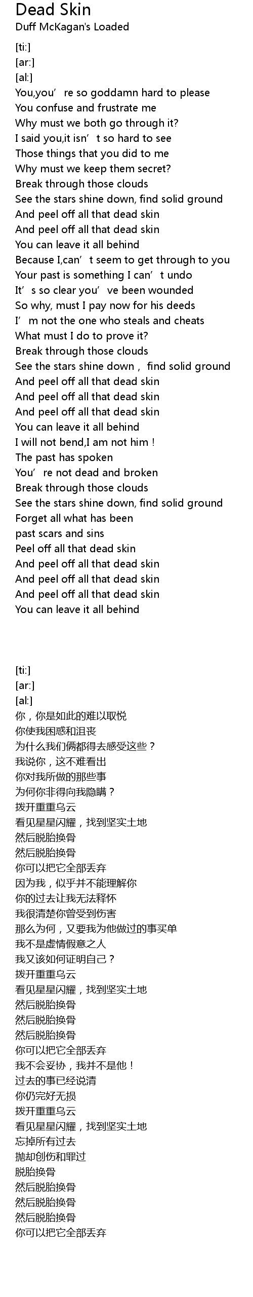| [00:55.42] | And peel off all that dead skin |