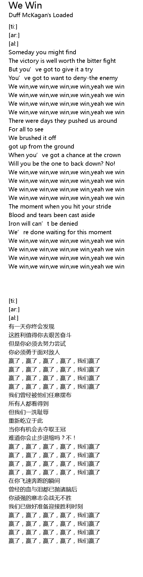 | [03:07.26] | We win,we win,we win,we win,yeah we win |