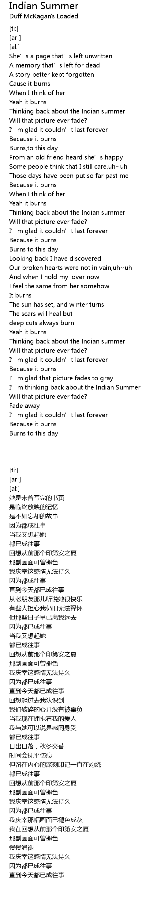 | [03:43.86] | I' m thinking back about the Indian Summer |