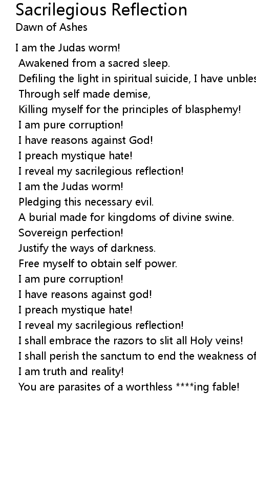I shall embrace the razors to slit all Holy veins! |