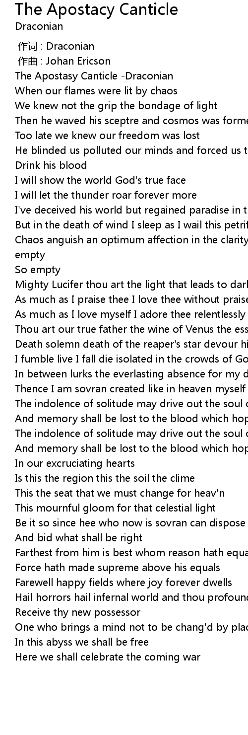 | [00:00.681] | The Apostasy Canticle -Draconian |