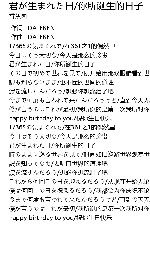 | [00:39.123] | jūn shēng rì nǐ suǒ dàn shēng de rì zi |